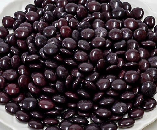 Chocolate Drops are oblate spheroids with a minor axis of about 5 mm (0.2 in) and a major axis of about 12 mm (0.5 in). They come in colours: black, red, yellow, green, blue, mauve, pink and white.